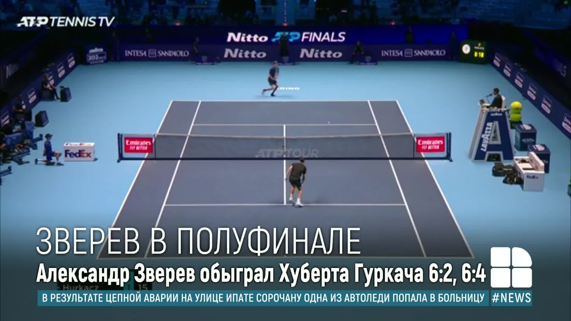 Александр Зверев сыграет в полуфинале Итогового турнира ATP. Представитель Германии обыграл в третьем матче поляка Хуберта Гуркача 6:2, 6:4. Встреча продолжалась чуть более часа.