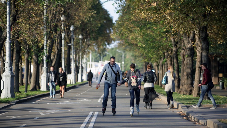 Некоторые столичные жители занялись спортом. Школьники отправились на экскурсию. Родители воспользовались солнечным днём и отдыхают с детьми.