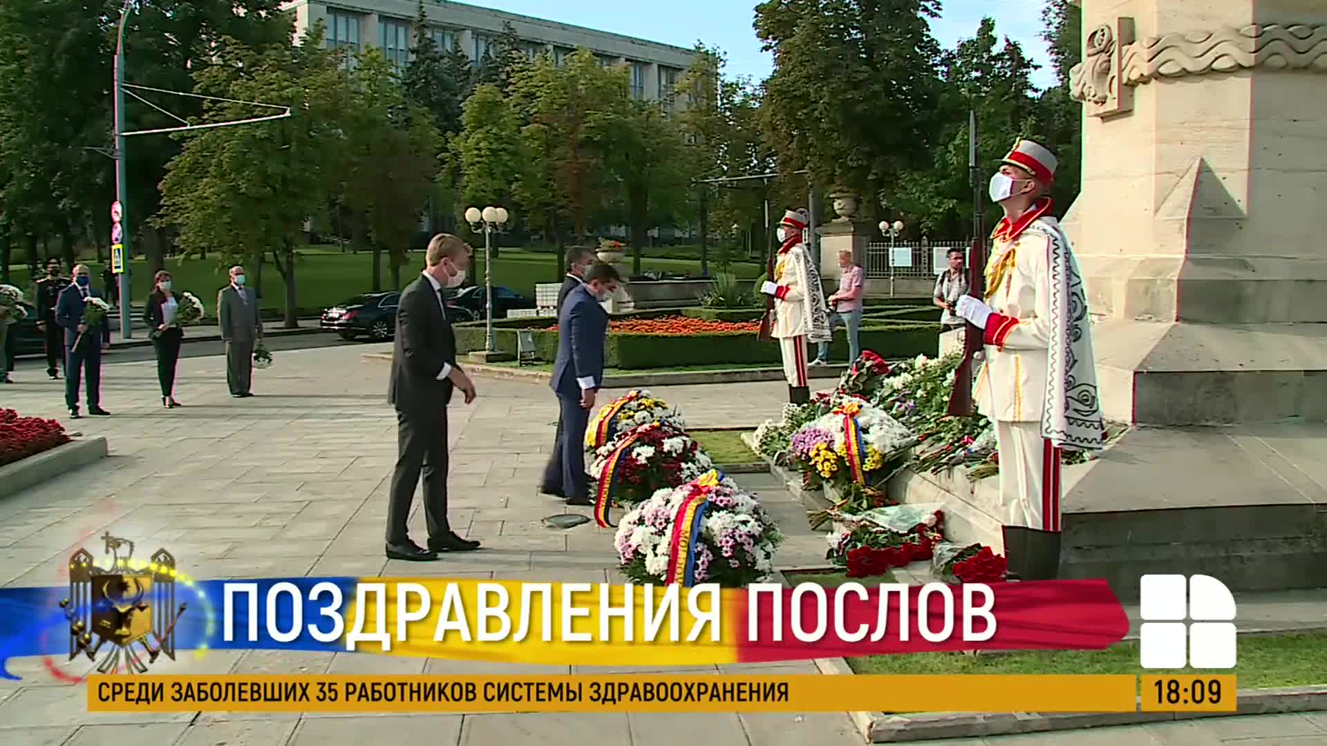 Поздравили Молдову с Днем независимости и послы, аккредитованные в нашей стране. Сегодня утром они возложили цветы к памятнику Штефана чел Маре.