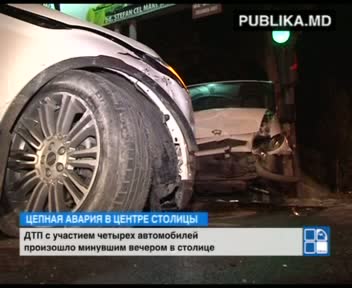 Четыре автомобиля пострадали минувшим вечером в результате цепной аварии в центре столицы. На бульваре Григоре Виеру водитель автомобиля представительского класса хотел повернуть, врезался в другую машину, которая ударилась в два припаркованных рядом других автомобиля.