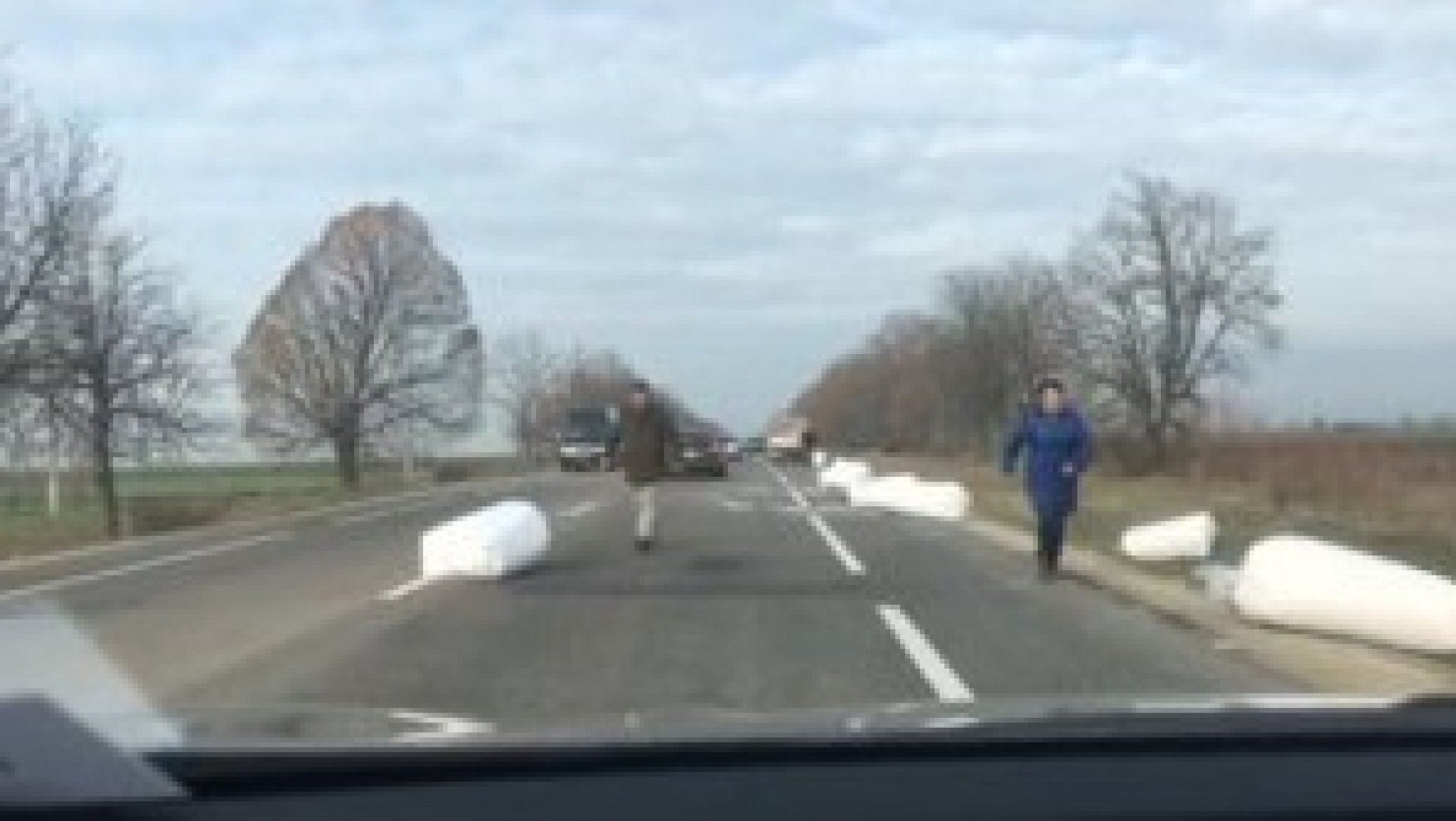 Авария на трассе Кишнев-Бельцы. Согласно кадрам, которые прислал в нашу редакцию очевидец, на дороге лежат мешки с пенопластовой крошкой. А на обочине дороги стоит грузовик.
