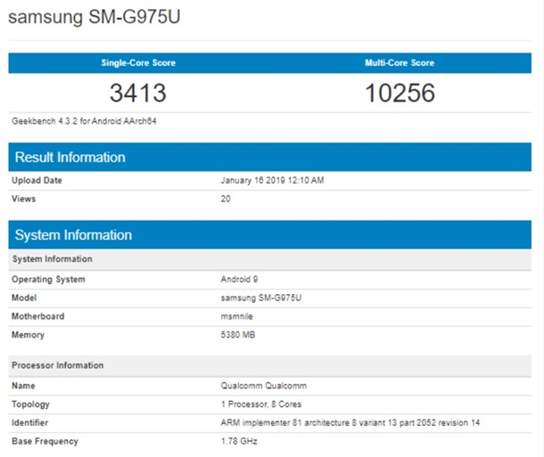 На бенчмарке Geekbench появились результаты тестирования флагманского смартфона Samsung Galaxy S10 Plus. Базируется гаджет на топовом Android-чипе Snapdragon855, пишет korrespondent.net.