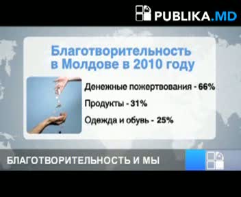 Согласно социологическим исследованиям, на протяжении 2010 года около 70 процентов граждан Молдовы жертвовали деньги, чуть более 30 процентов - продукты, а 25 процентов - одежду и обувь.