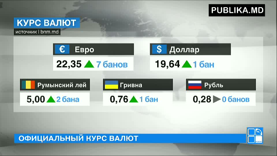 Евро подорожал на 7 банов и стоит 22 лея 35 банов. Доллар торгуется по 19 леев 64 бана.