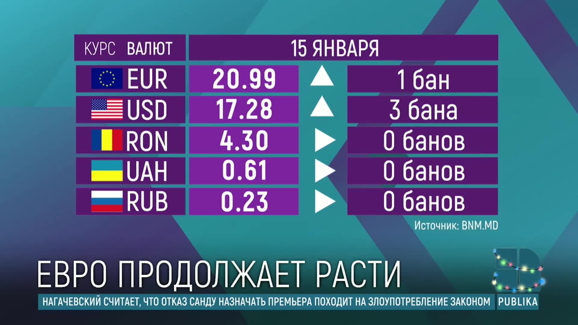 Прежнюю цену сохранил румынский лей. Он приравнивается к четырем молдавским и 30 банам. Украинская гривна стоит 61, а российский рубль — 23 бана.
