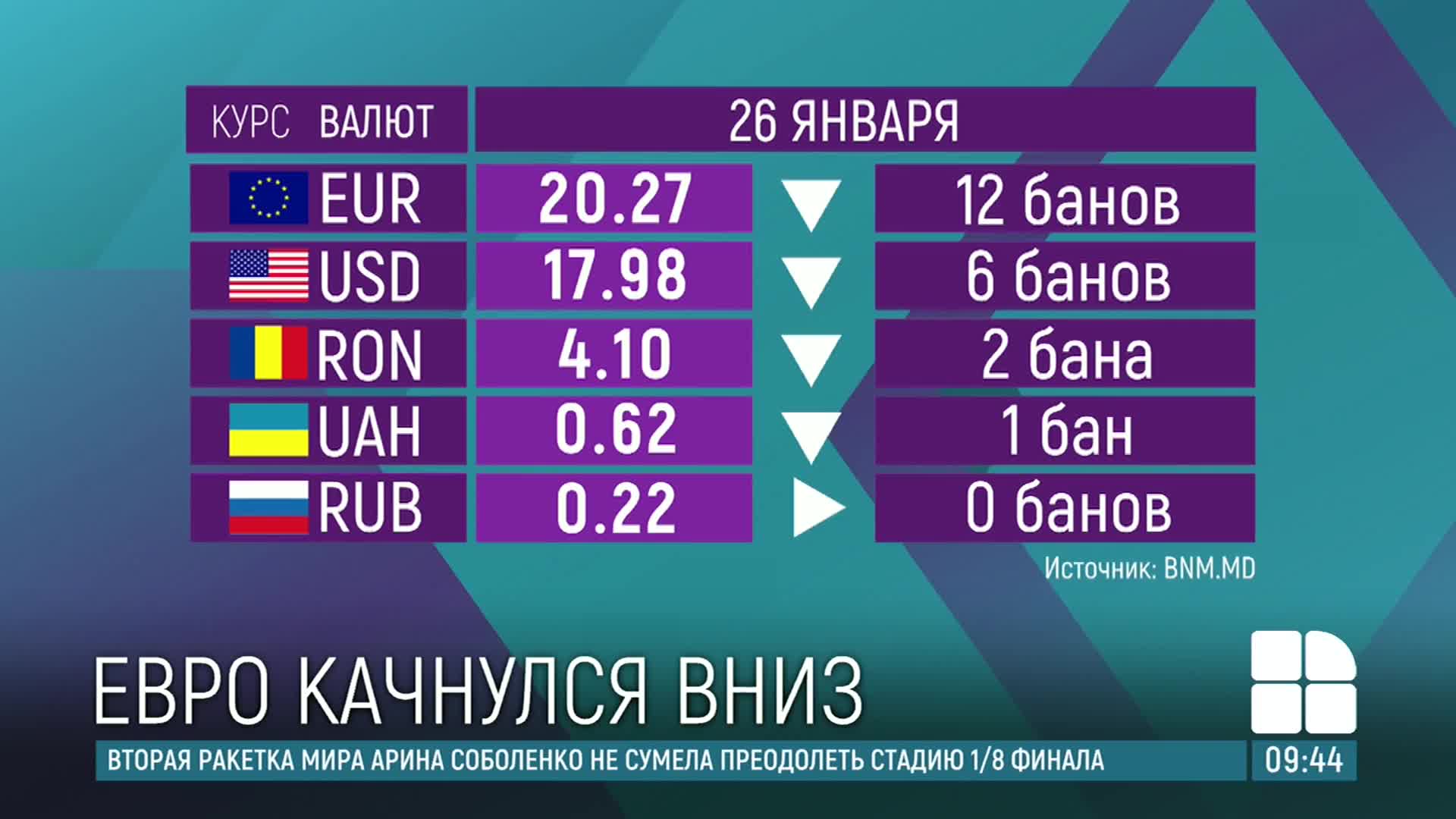 Молдавский лей отвоевывает позиции. По курсу Национального банка евро потерял 12 банов и стоит сегодня 20,27.