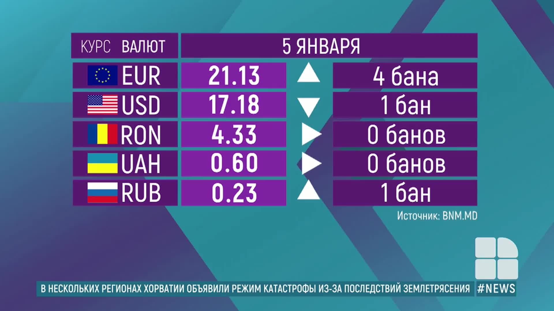Украинская гривна по-прежнему стоит 60 банов. А российский рубль немного подорожал, за него дают 23 бана.