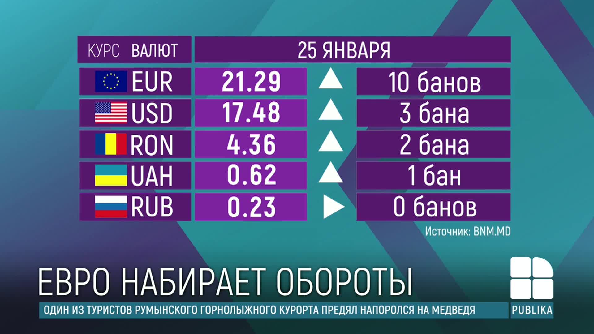 Американский доллар укрепился на три бана, его продают по 17,48. Румынский лей отвоевал два бана и стоит 4,36. Украинская гривна выросла в цене до 62 банов. Российский рубль стабилен, за него просят 23 бана.