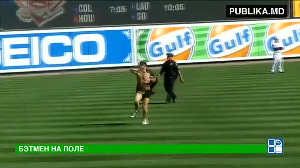 В США перед стартом бейсбольного матча на поле вырвался стрикер в костюме Бэтмена. Публика встретила неожиданного гостя аплодисментами. И даже полицейские его не очень спешили ловить. Чтобы поймать Бэтмана у восьмерых служителей закона ушло около минуты.