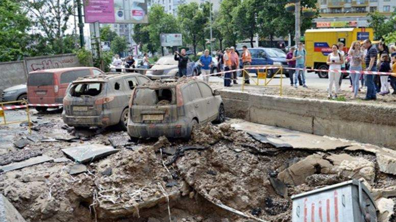 Опубликовано видео прорыва трубы на улице в Киеве