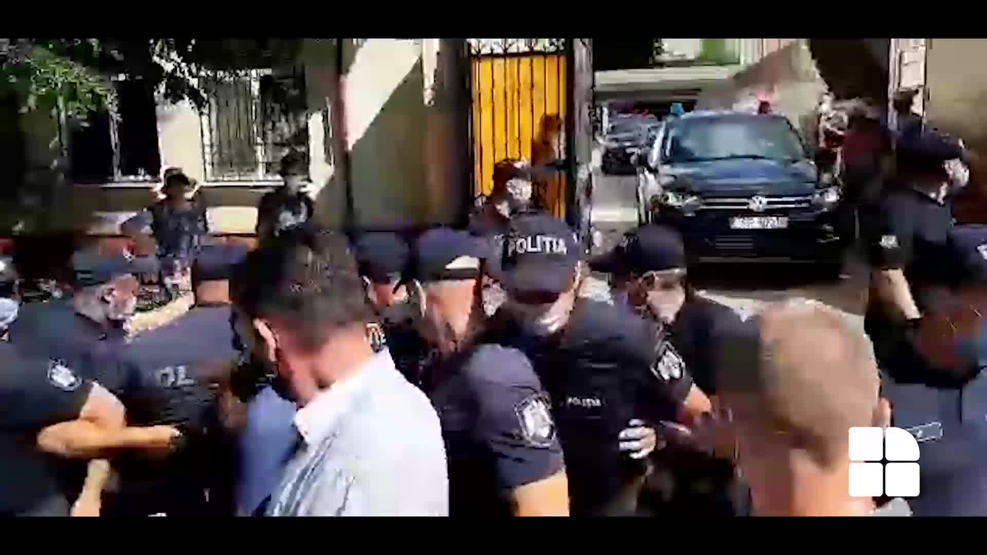 Перепалка и стычка у президентуры. Депутаты PRO Moldova Владимир Чеботарь и Геннадий Вердеш пытались осмотреть машины, выезжающие из двора Службы госохраны, рассположенной за зданием администрации главы государства. Собравшихся у ворот оттолкнули в сторону сотрудники полиции.