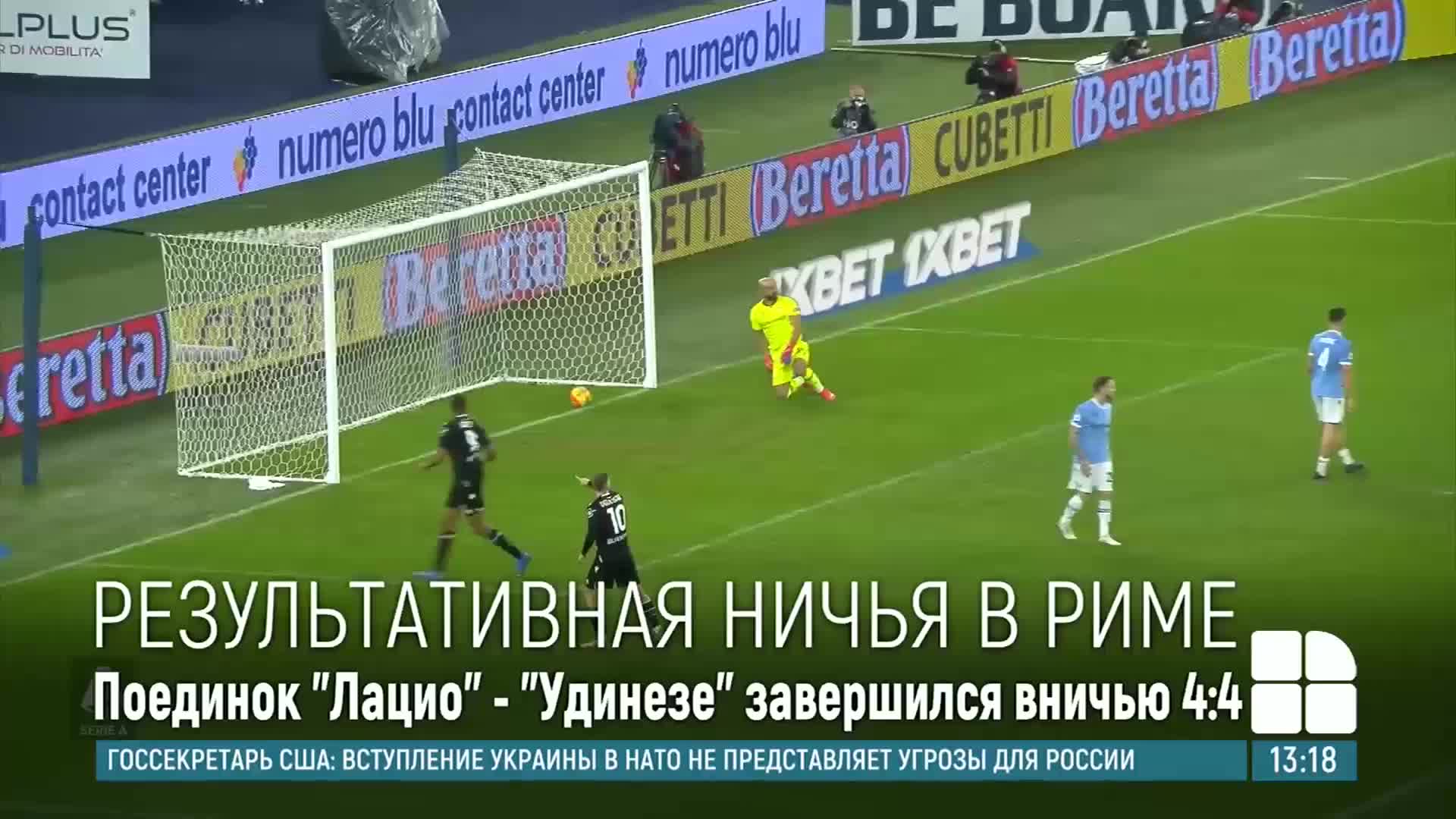 Сверхрезультативная игра в матче итальянской серии А. Поединок "Лацио" - "Удинезе" завершился вничью 4:4.