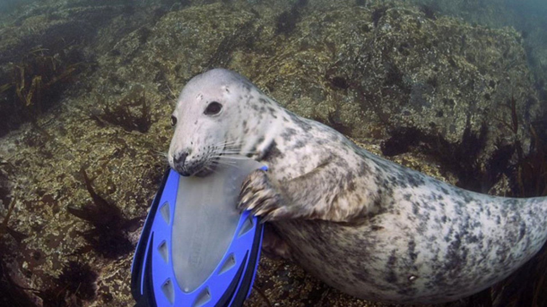 Тюлень-детеныш попытался украсть у дайвера камеру
