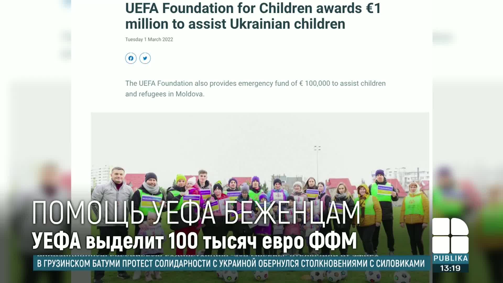 Поддержка УЕФА украинских беженцев. Молдавская федерация футбола получит 100 тысяч евро от детского фонда форума для оказания неотложной помощи прибывшим в страну из Украины. Средства пойдут на закупку лекарств и будут распределены среди гуманитарных организаций.