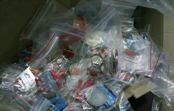 Во время пограничного контроля, в его автомобиле правоохранители обнаружили коробки с орденами, медалями, документами к ним, более 900 паспортных бланков Советского Союза и другие предметы с подобной символикой.