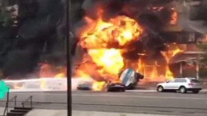 В центре Алматы, бензовоз протаранил несколько автомобилей, врезался в столб и загорелся. Водитель машины погиб. Из-за разлившегося бензина пламя перекинулось на ближайший многоэтажный дом, в котором выгорело более 20 квартир. Из горящего здания эвакуировали 40 человек.