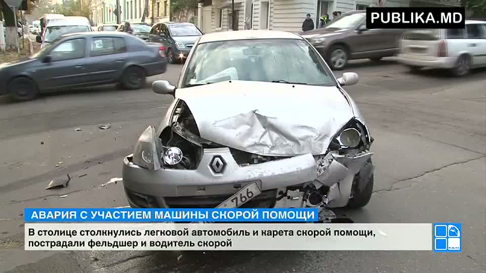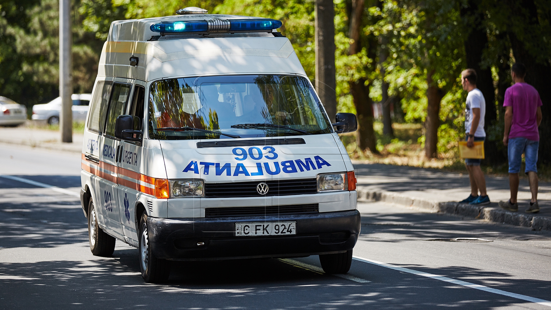 Автомобиль скорой помощи перевернулся в центре Кишинева. Авария случилась на перекрестке улиц Александру чел Бун и Сфатул Цэрий.