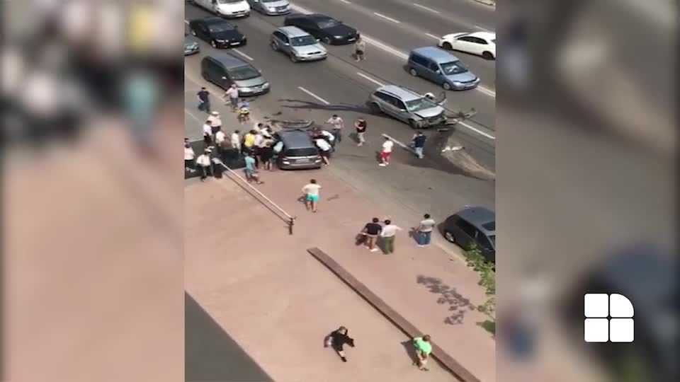 На видео, которое сняли очевидцы, видно, как прохожие пытаются оказать первую помощь пострадавшим, которых зажало внутри машины. На место происшествия прибыли экипажи скорой помощи и пожарных.